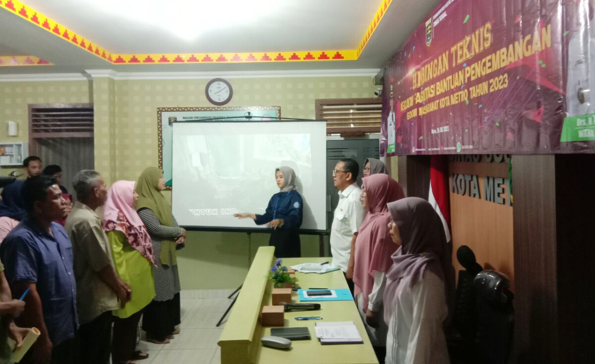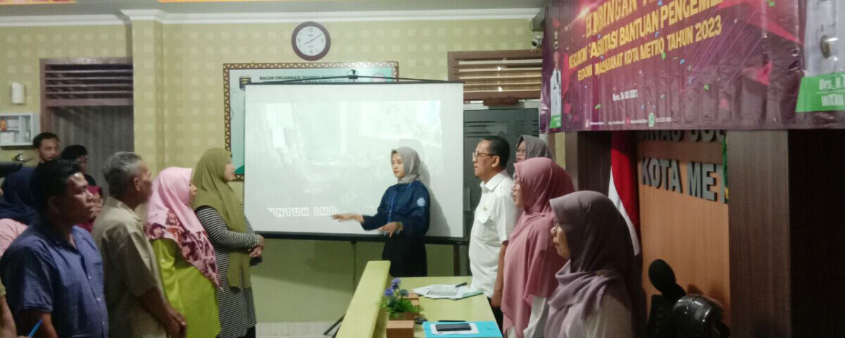 METRO – Sebanyak 20 calon penerima bantuan pengembangan ekonomi masyarakat mengikuti kegiatan Bimbingan Teknis Fasilitasi Bantuan Pengembangan Ekonomi Masyarakat Tahun 2023 bertempat di aula Dinas Sosial Kota Metro. (26/07/23). Kegiatan Bimbingan teknis tersebut merupakan kegiatan lanjutan setelah proses verifikasi dan validasi yang telah dilakukan guna menetapkan ke 20 calon penerima bantuan pengembangan ekonomi masyarakat tahun 2023.