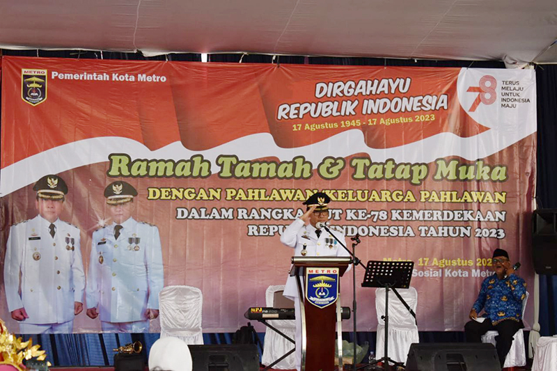 “Sebagai generasi bangsa, berkewajiban untuk mengisi kemerdekaan dengan pembangunan yang dilaksanakan dan berharap dengan kebersamaan kita bisa membangun Kota Metro semakin maju, semakin berkembang, dan masyarakatnya semakin sejahtera,” kata Walikota Metro dalam sambutannya di halaman rumah dinas Walikota Metro, Kamis (17/8/2023).